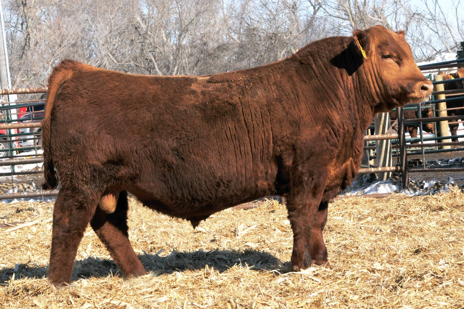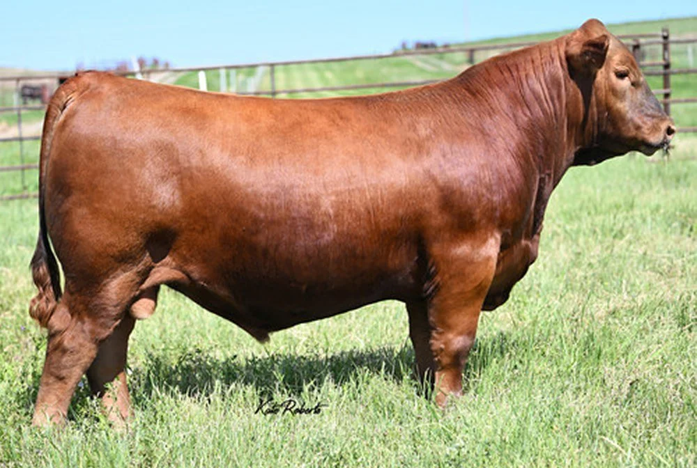 Collusion is a full brother to the top selling Collusion son at the C Bar Red Angus sale in Kansas this past spring. We liked him in the catalog, but liked him even more when he got off the trailer. He is moderate, but is packed with power and maternal traits as well. His dam Stoney 837F is a key donor cow in the CBar program.